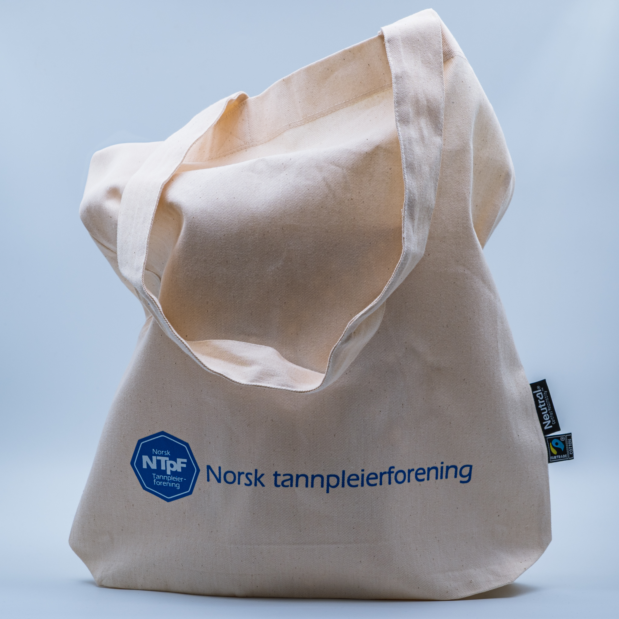 Slitesterkt og miljøvennlig bærenett i naturfarget, ubleket bomull. Nøytral og tidløs design med blå NTpF-logo og navnetrekk. Produsert av Neutral®, som er kjent for høye etiske og miljømessige standarder.